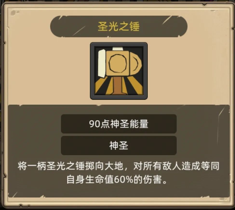 主动技能神圣天使,群体造成等同自身生命值100%的伤害,同时回60能量,群体爆发+回蓝是一个不错的强力技能。