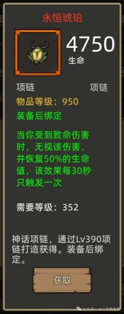 项链毕业推荐390红项链——永恒琥珀,其他先不看,受到致命伤害回血这个对于奶骑来说确实用不到,下位替代可以选择395的生命容器。