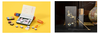 《国博日历》《活版印刷月历》及笔记本套装三种不同风格、形式的日历,外观靓丽,功能多样;磁吸春联、春联冰箱贴多样选择,为传统用品带去新玩法;传统红包换新颜,立体凤冠“蓝包”,百鸟朝凤送祝福,葫芦套装红包,“福禄寿喜”全部囊括;元宵行乐年货礼盒,点心、茶叶、红包样样俱全。