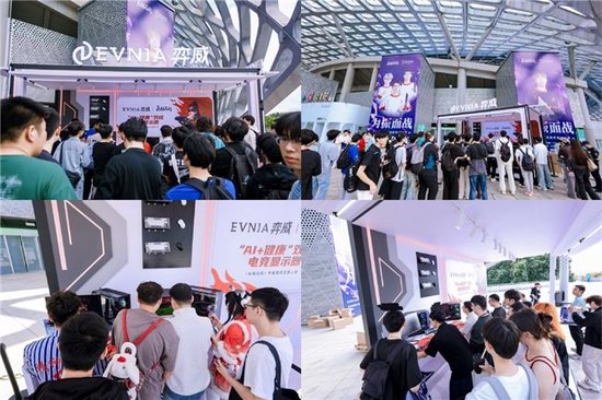 赛场外的 “江湖弈站”,EVNIA 弈威同步设置赛事同款显示器 25M2N5500U、双模游戏显示器 27M2N6801M 及搭载《永劫无间》专属游戏模式的 QD-OLED 游戏显示器 27M2N8800 体验区,让普通玩家零距离体验职业级硬件配置,亲手操控设备完成振刀、连招、跑图等操作。体验区外排起的长队,充分印证了 EVNIA 弈威专业电竞显示器的超高人气。